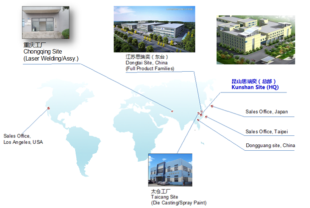 思瑞奕電子有限公司成立于2010年10月,注冊(cè)資金7500萬(wàn)人民幣,總部位于江蘇省昆山市,在重慶、江蘇東臺(tái)、江蘇太倉(cāng)設(shè)有分廠,公司于2011年通過(guò)ISO9001/ISO14001認(rèn)證,2013年通過(guò)高新技術(shù)企業(yè)和TS16949(IATF)體系認(rèn)定,2016年先后通過(guò)知識(shí)產(chǎn)權(quán)管理體系認(rèn)證、安全生產(chǎn)標(biāo)準(zhǔn)化認(rèn)證,2017年獲頒江蘇省民營(yíng)科技企業(yè)、2018年先后獲得蘇州市人民政府認(rèn)定企業(yè)技術(shù)中心、科技部認(rèn)定中小型科技企業(yè)、江蘇省最具成長(zhǎng)性高科技企業(yè)、2020年獲得江蘇省人民政府認(rèn)定企業(yè)技術(shù)中心、2021年獲得蘇州市瞪羚計(jì)劃入庫(kù)企業(yè)、江蘇省省級(jí)工程技術(shù)研究中心、江蘇省專精特新中小企業(yè)等榮譽(yù)稱號(hào)......